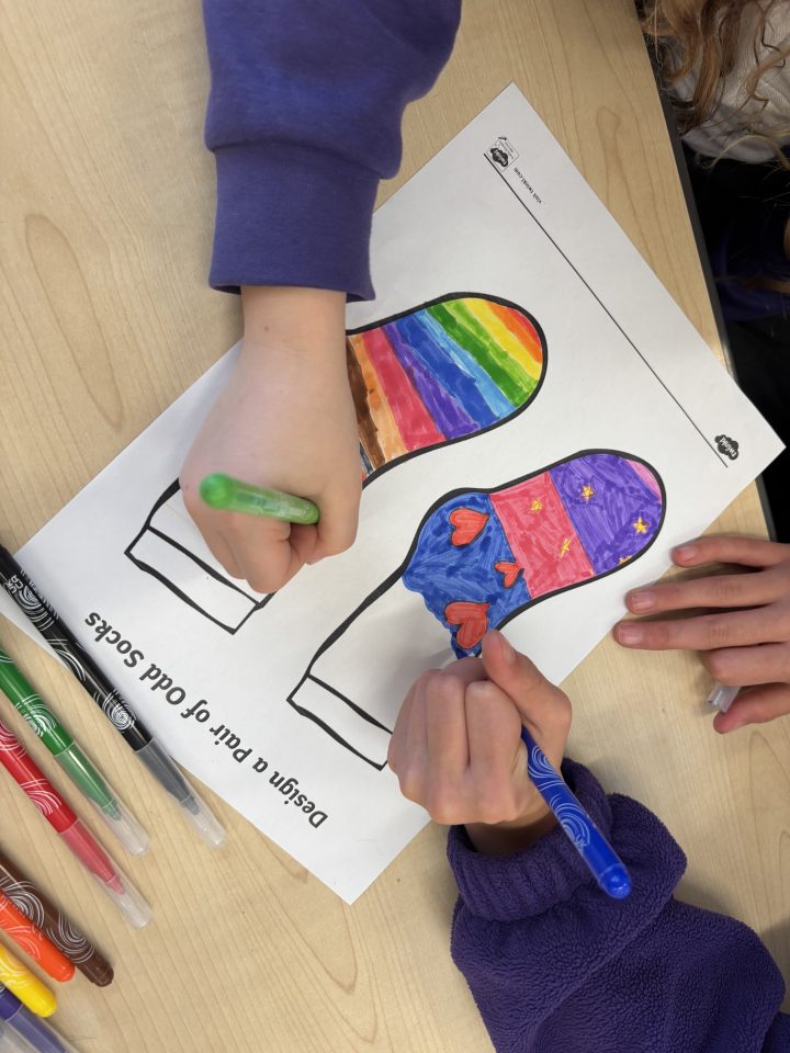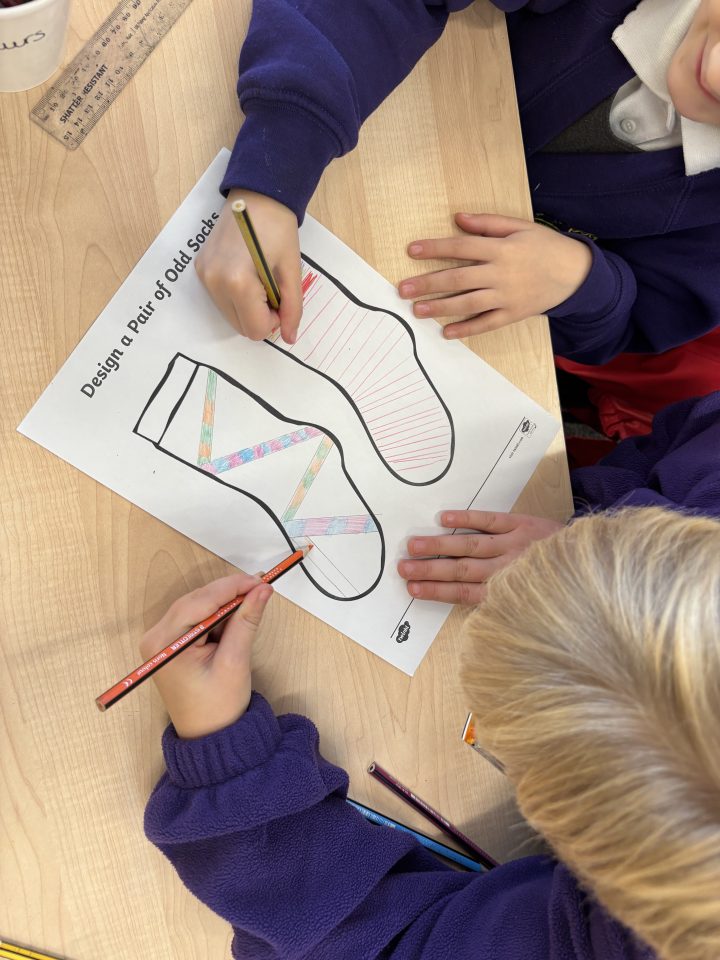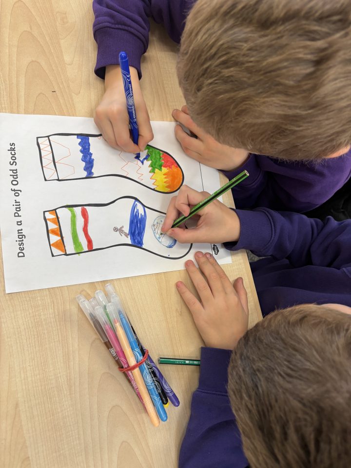Year 5 had a great time with their Year 2 buddies on Friday designing odd socks as part of curriculum day.
