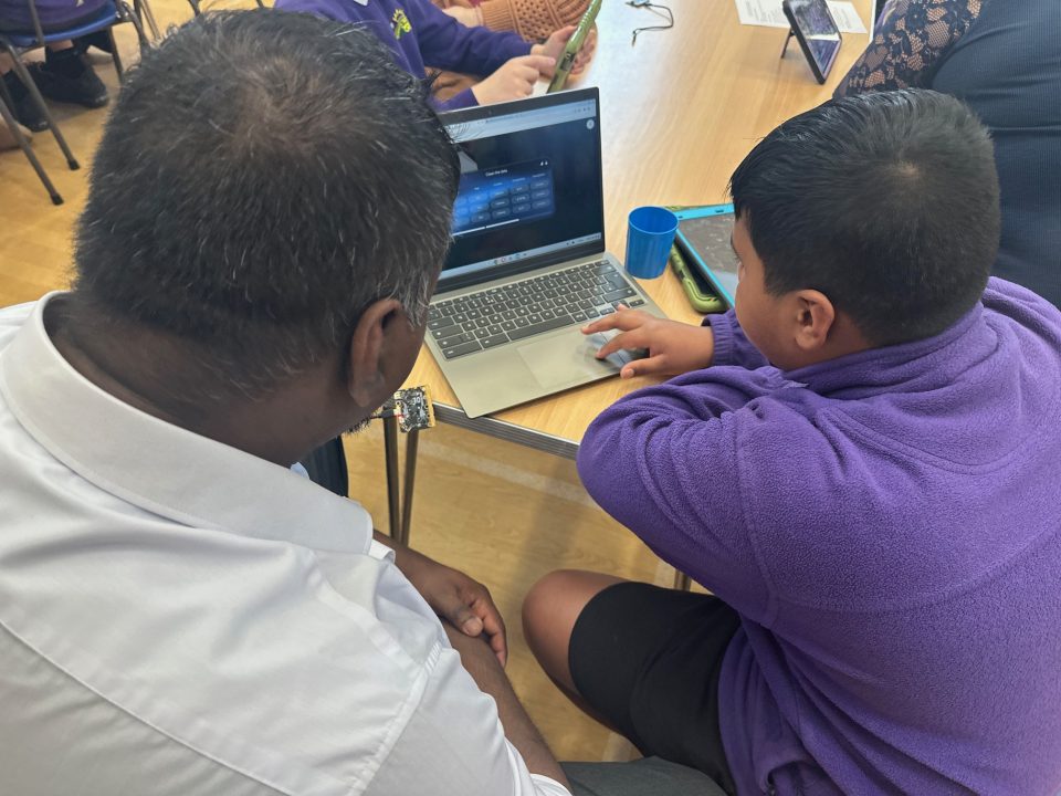 Pupils had the chance to explore a range of exciting activities, including AI coding challenges from the AI Hour of Code website, hands‑on tasks using Micro:bits, and creative projects on our Chromebooks. The pastries and juice were very popular too!
