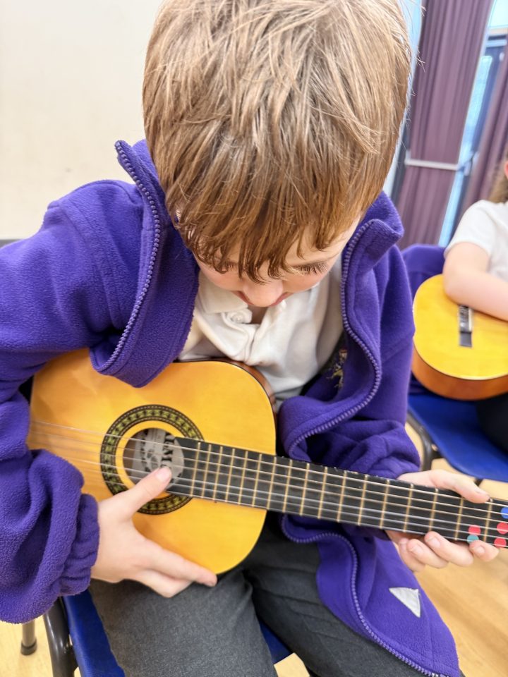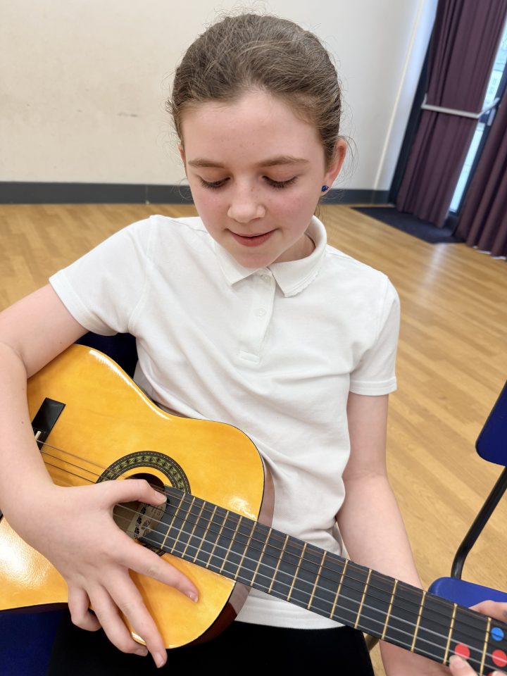 Year 5 have enjoyed learning guitar this term. They were able to build on their learning from last year and learn new chords and perform different songs.