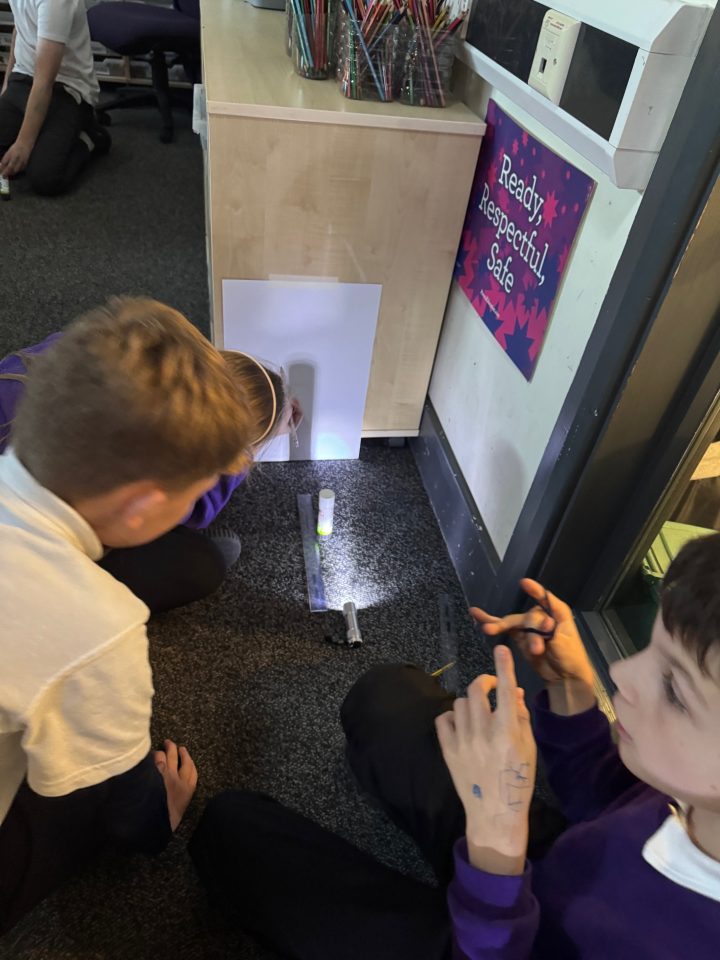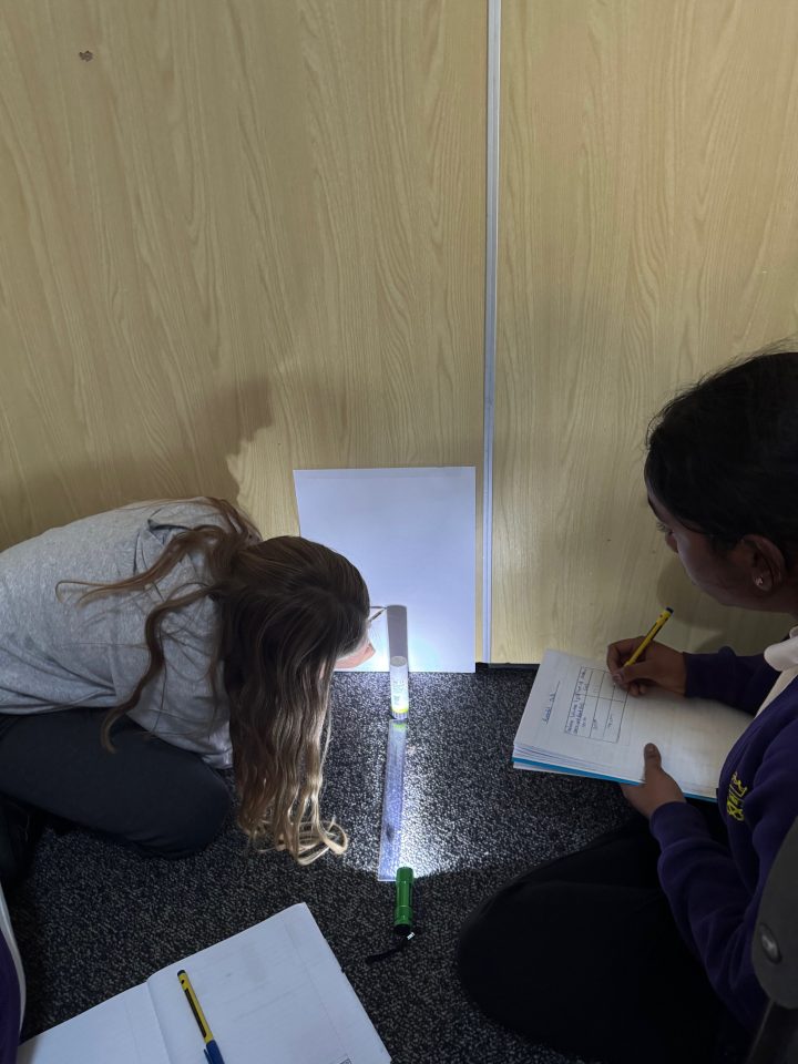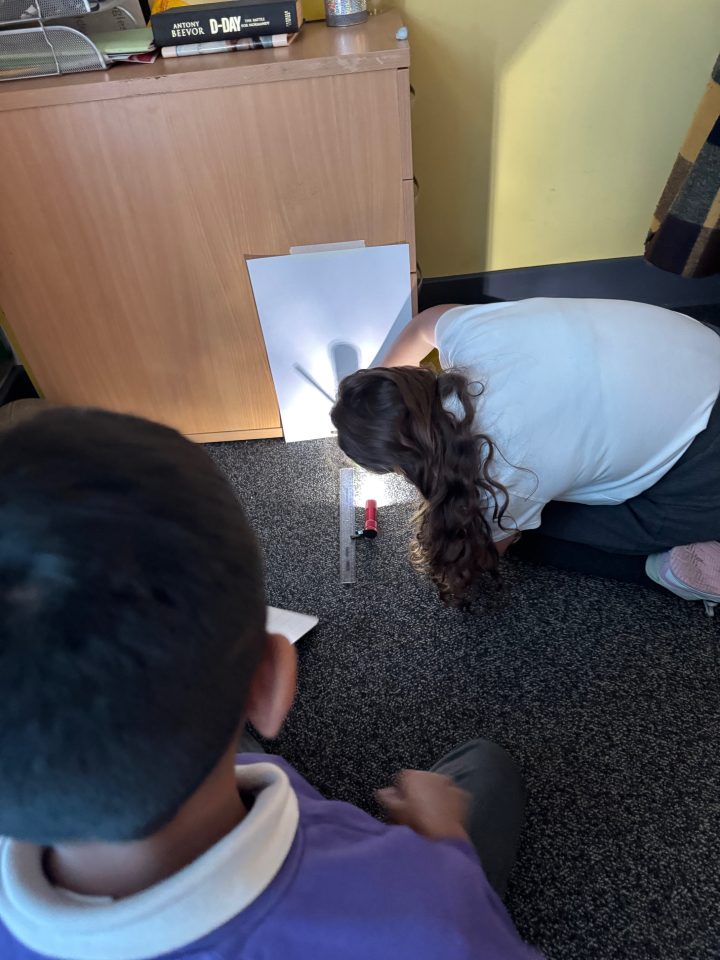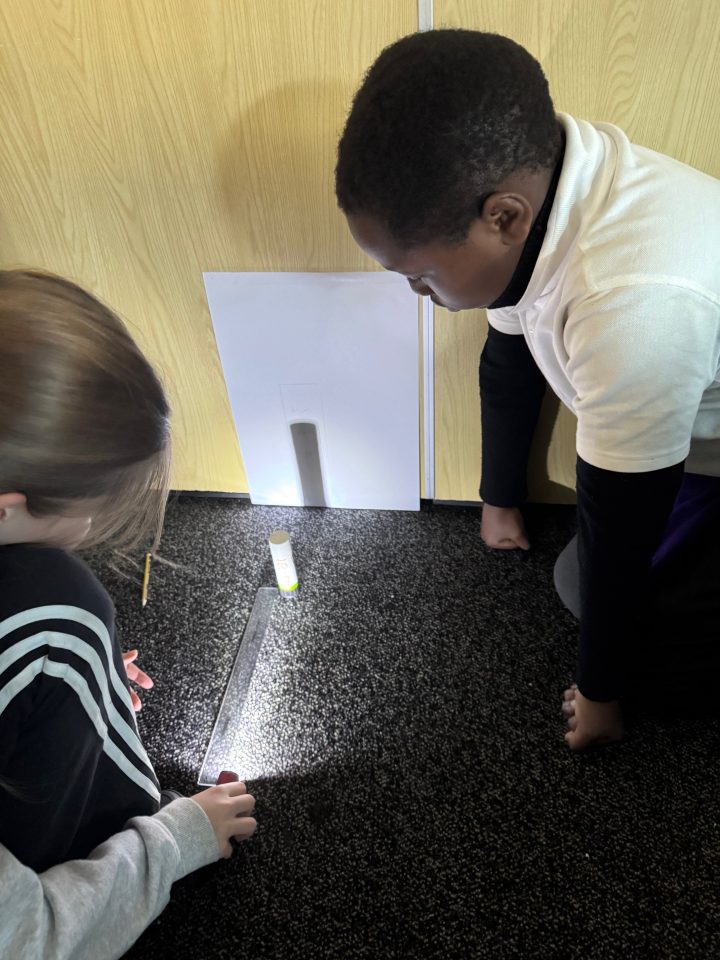 Year 6 have continued their Light unit in science, learning about how shadows can change in size through changing the distance between the object ad light source. The children were independent in setting up their investigations and showed great teamwork.