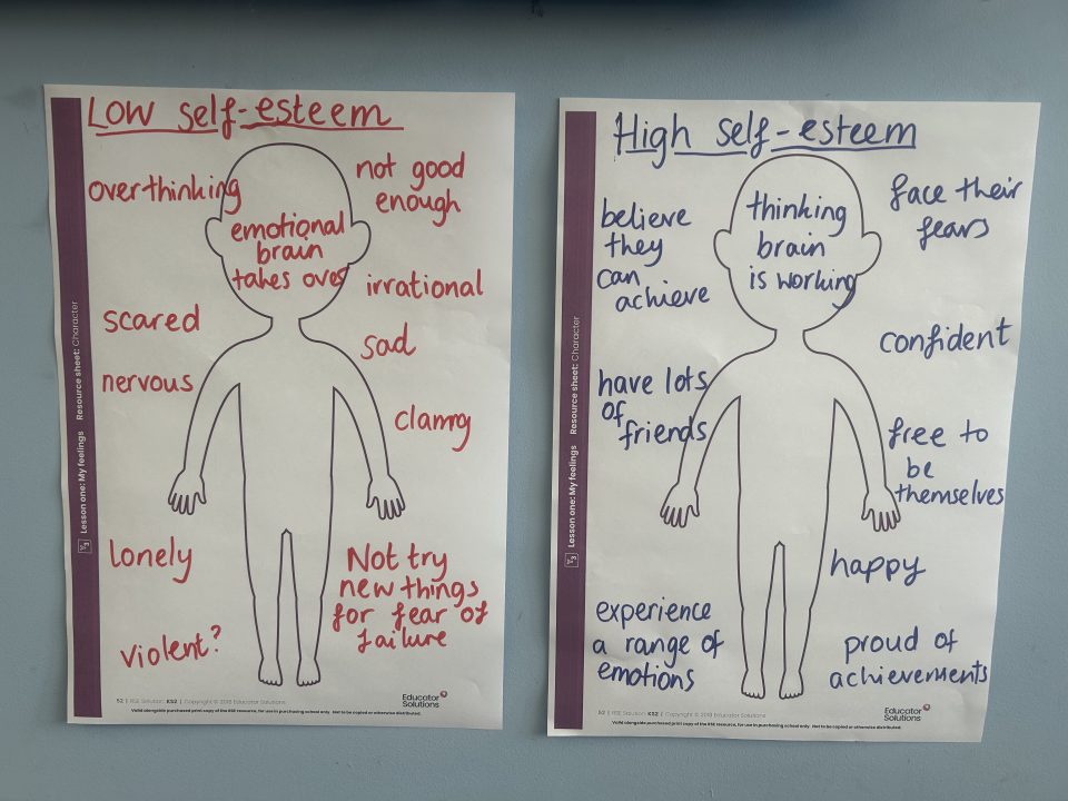 As a class, they discussed what self esteem means and thought about what high and low self esteem looks like.