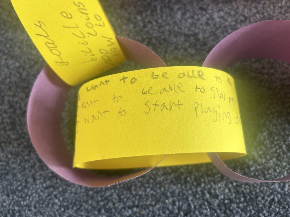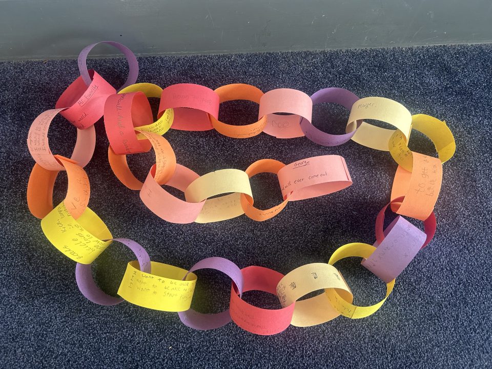 To end the lesson, they each wrote 3 goals of things they would like to achieve that would make them feel proud. They made these into a paperchain.