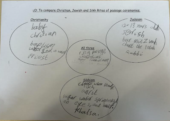This half term, Year 3 have been learning all about rites of passage in different religions. They have learnt about infant and believers’ baptism in Christianity, Bar/Bat Mitzvah in Judaism and the Amrit ceremony in Sikhism.