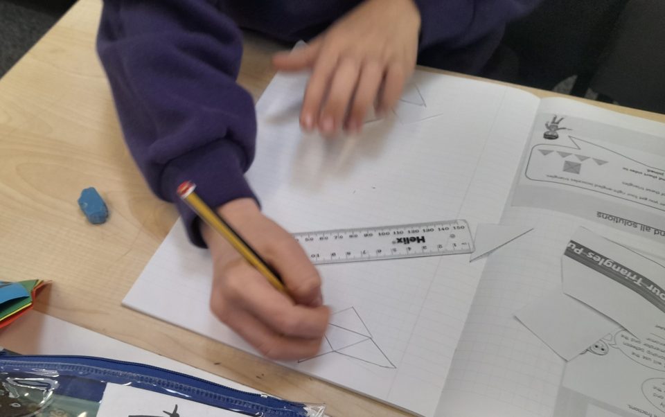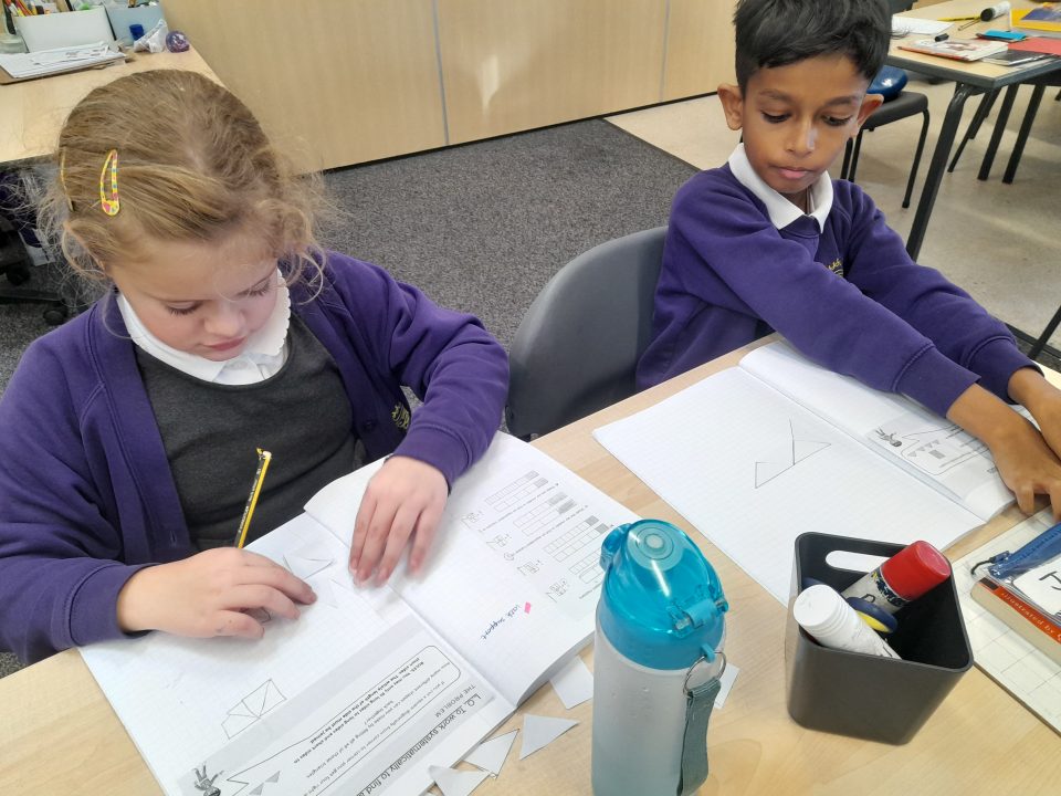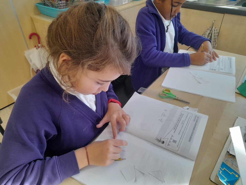 Year 5 enjoyed the whole school maths investigation, seeing how many shapes they could make out of 4, right angled isosceles triangles. They had to work systematically and showed great concentration and grit and determination!